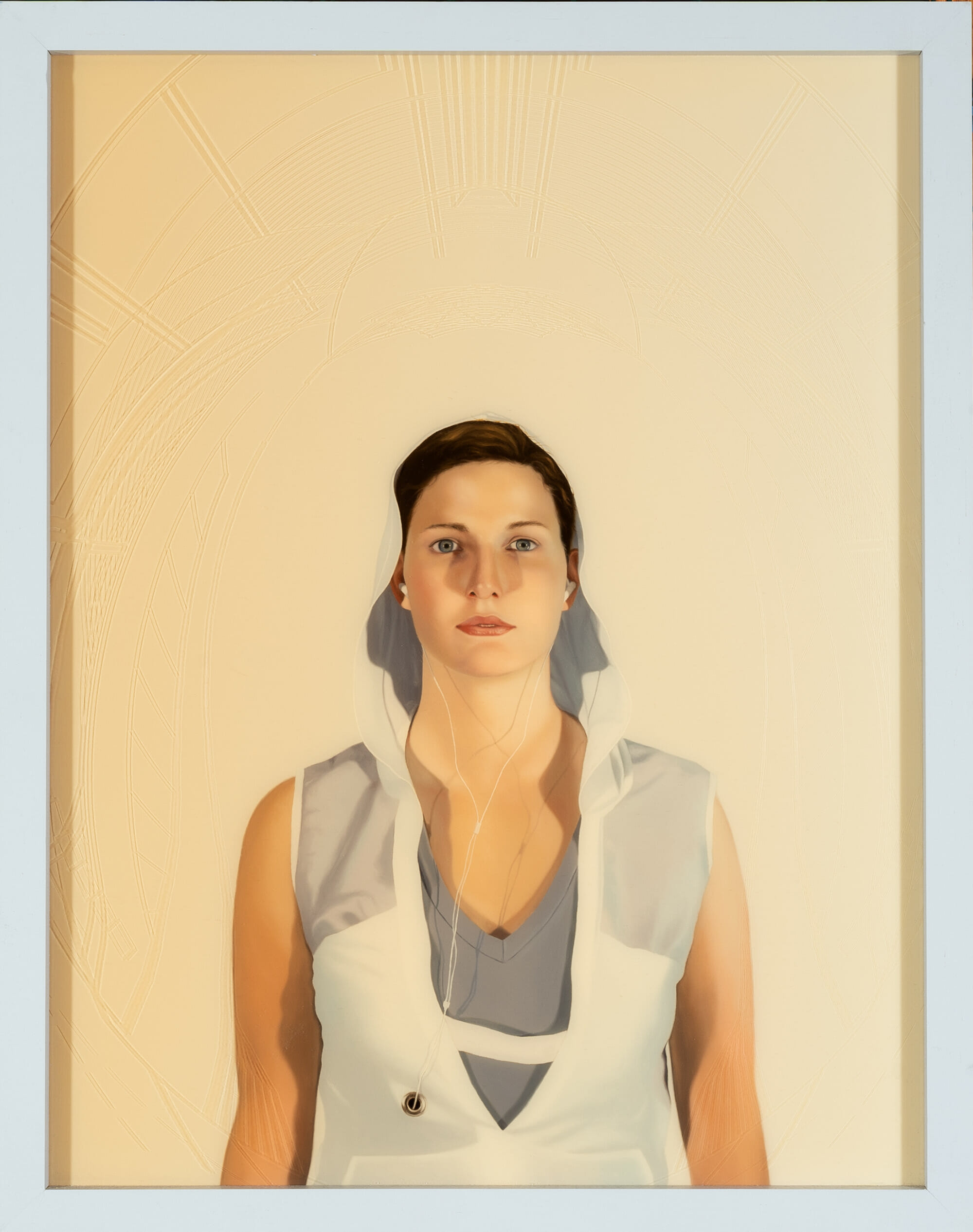 oil, resin and laser engraving on panel